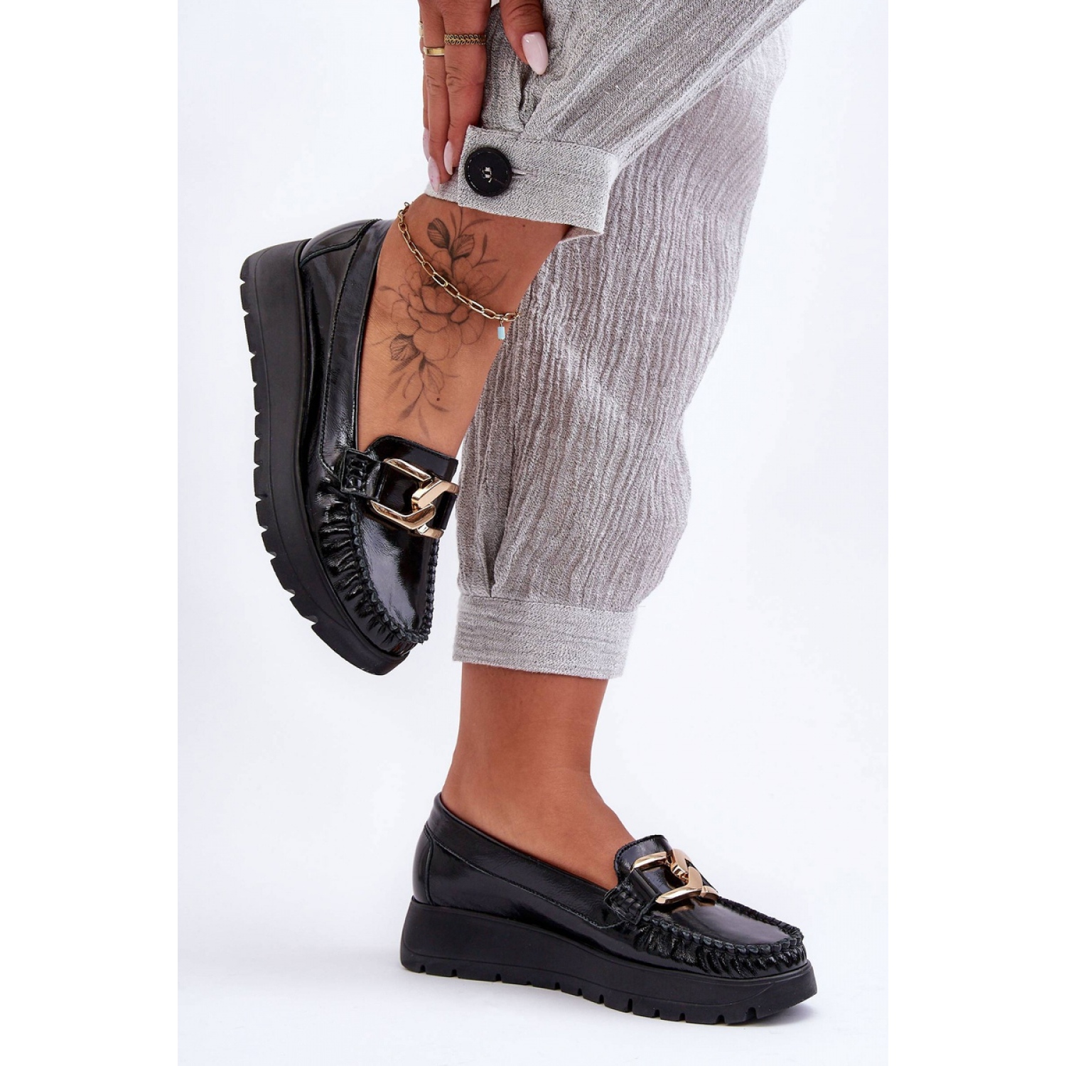 Les mocassins modèle 10141 noir sont des chaussures pour femmes élégantes et stylées qui allient confort de port et design à la mode. Fabriqués à partir de cuir naturel de la plus haute qualité, ils se caractérisent par une attention aux détails et un look moderne. La finition laquée noire leur donne un éclat unique, ce qui en fait un complément parfait aux styles quotidiens et plus formels.