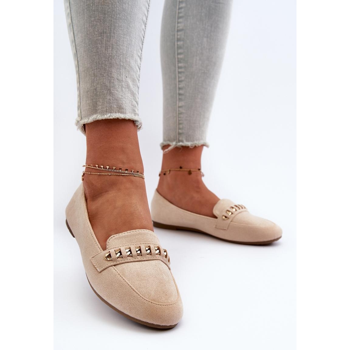 Mocassins pour femmes en suède écologique. Décoré de fil brillant et d'une ceinture en chaîne. Ce modèle est un choix parfait pour toute femme élégante. La semelle intérieure souple assure un confort tout au long de la journée. Ces mocassins seront un complément parfait à votre garde-robe d'été, ajoutant un charme unique et chic à n'importe quelle tenue.