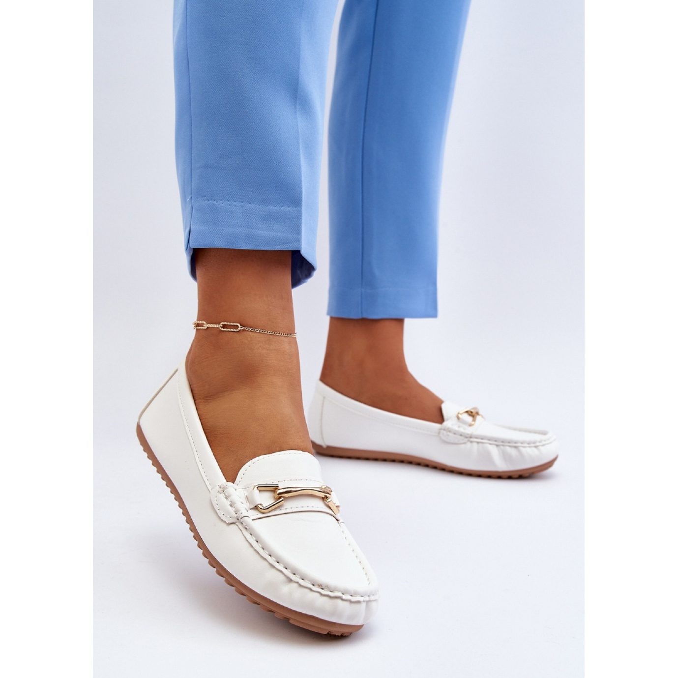 L'avant des mocassins orne une ceinture subtile avec une décoration dorée, ce qui leur donne un caractère unique. Le nez arrondi met l'accent sur leur délicatesse et les rend parfaitement mélangés dans de nombreuses stylisations de printemps et d'été. La hauteur de la tige de 5,5 cm garantit une stabilité adéquate et ne limite en même temps pas les mouvements, ce qui en fait un excellent choix pour les résultats quotidiens ou les promenades d'été.