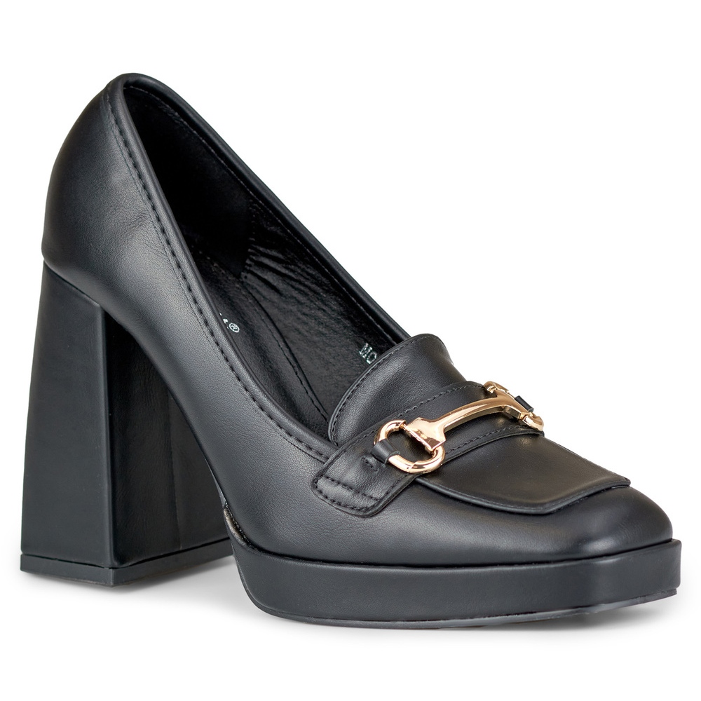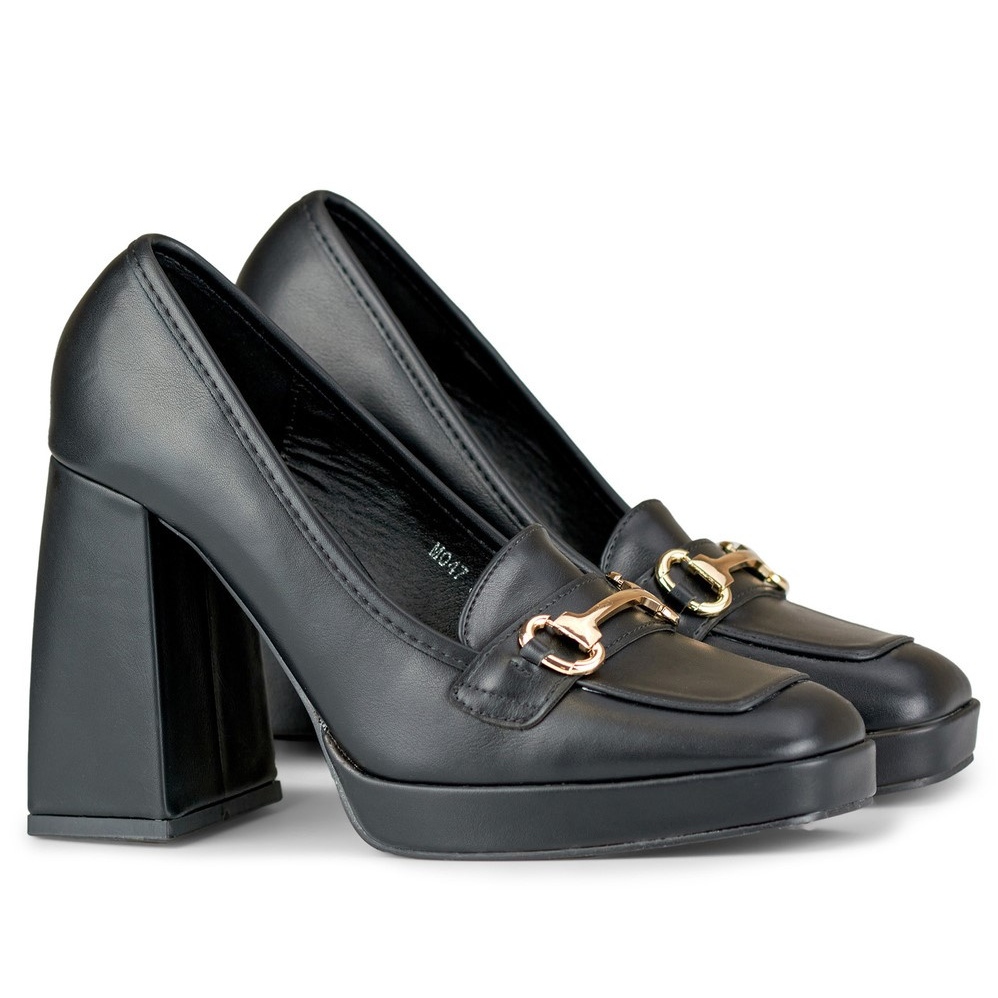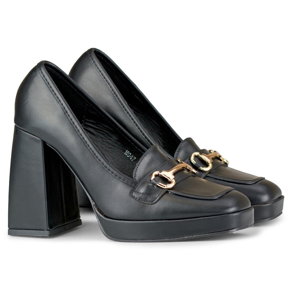 Les mocassins noirs sur un talon haut et confortable sont une combinaison de classiques et de style moderne - idéal pour les femmes qui apprécient l'élégance et le réconfort quotidiennement et pendant les sorties majeures.