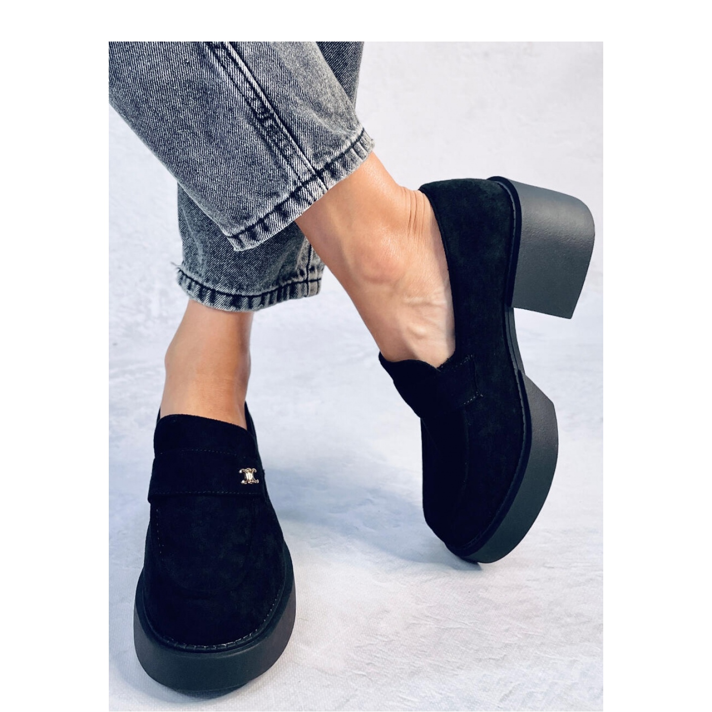 Les talons noirs sont le choix parfait pour les femmes qui apprécient l'élégance et le confort. Fabriquées en daim écologique de haute qualité, ces mocassins noirs classiques s'adapteront parfaitement à toute stylisation. Un large talon de 6 cm de haut et une plate-forme de 2 cm garantissent la stabilité et le confort lors du port, ce qui signifie que vous pouvez en profiter toute la journée.