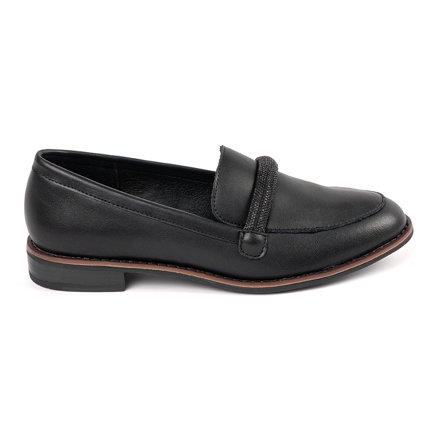 Les mocassins noirs avec un insert en cuir de Sergio Leone sont le choix parfait pour les femmes à la recherche d'une combinaison d'élégance et de confort. Ces chaussures classiques, faites de cuir écologique, se distinguent par un design minimaliste, ce qui les rend correspondre à de nombreuses stylisations quotidiennes et plus somptueuses.