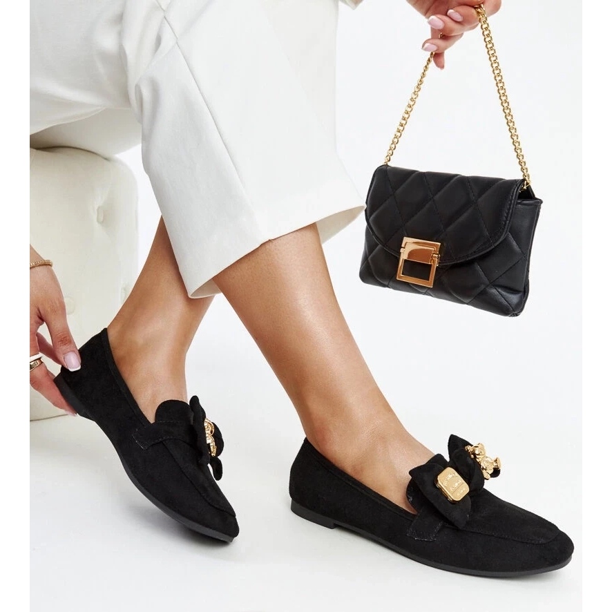 Des mocassins noirs avec une épingle de sécurité décorative ne sont pas seulement des chaussures, mais aussi un incontournable de mode pour les jours d'été. Leur semelle plate à faible coupe et soigneusement profilée assure le confort de port maximal, même pendant les longues promenades. Le charme de ces mocassins réside principalement dans une épingle de sécurité élégante, qui leur donne un caractère unique et les distingue parmi d'autres modèles.