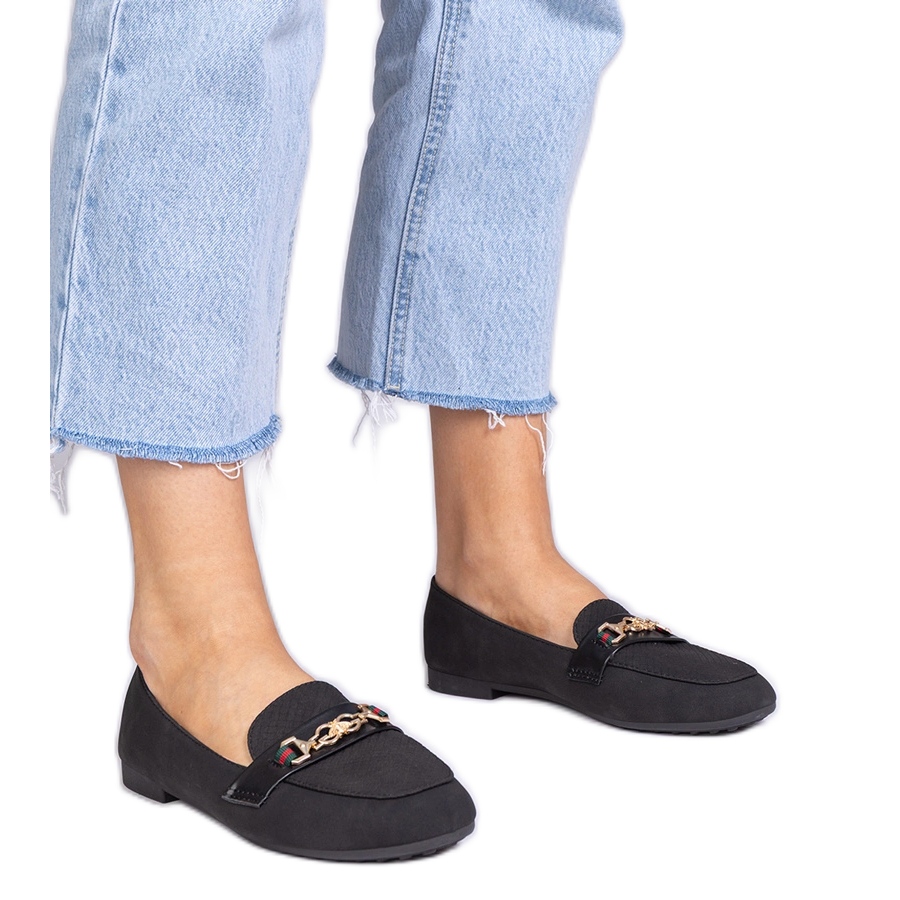 Mocassins noirs avec une finition mate avec une décoration dorée
