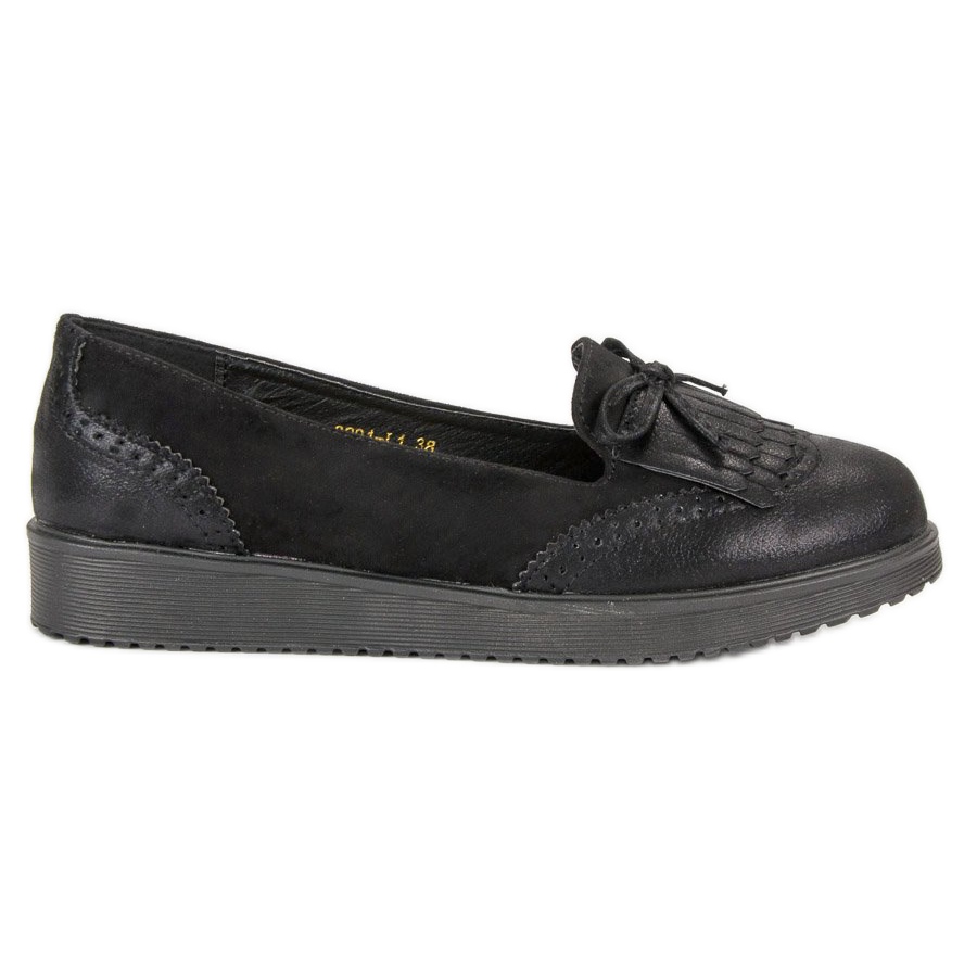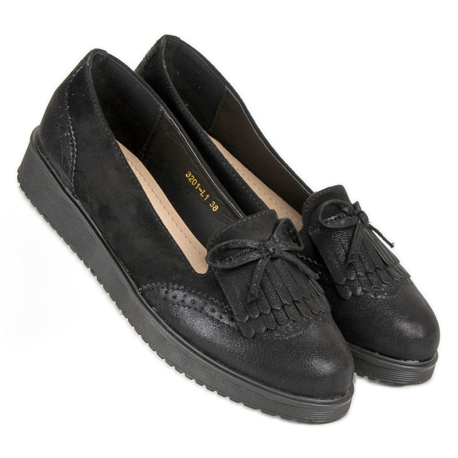 Le design de ces mocassins attire l'attention - de délicates franges ajourées et décoratives et un nœud ajoutent légèreté et élégance aux chaussures, et les couleurs noires les font correspondre à de nombreux styles. C'est une combinaison parfaite de classique et de moderne qui satisfera le goût des femmes les plus exigeantes.