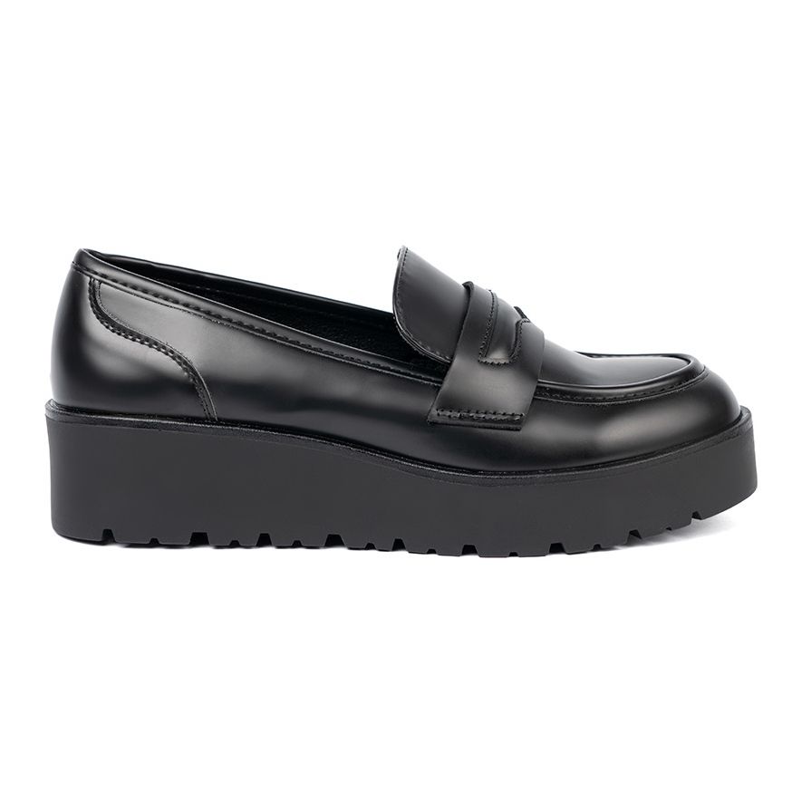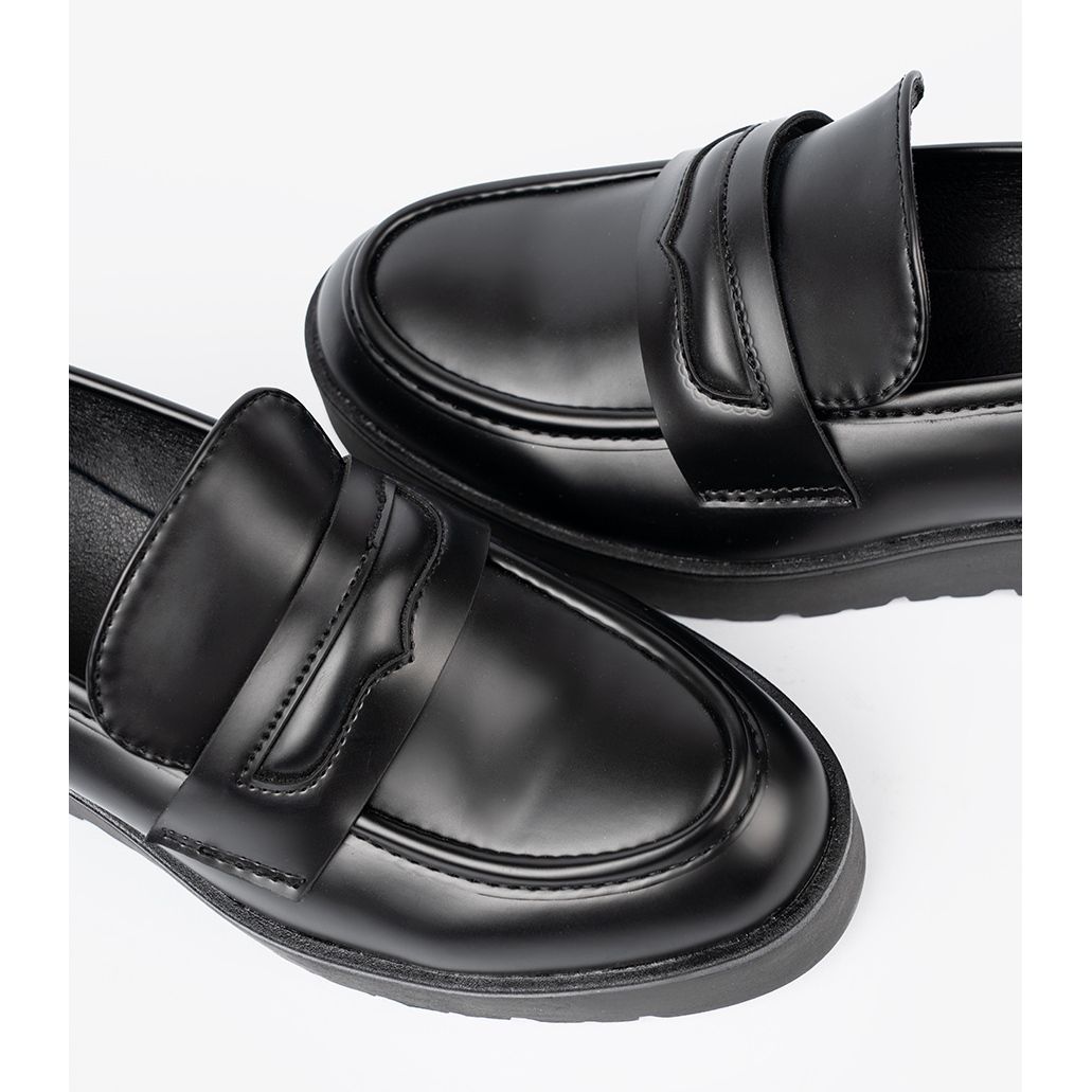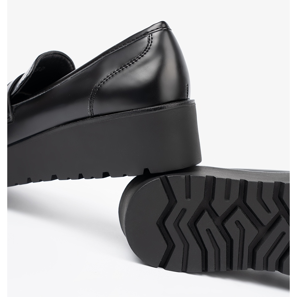 Détails: Shelvt Mocassins noirs élégants sur une semelle épaisse le noir