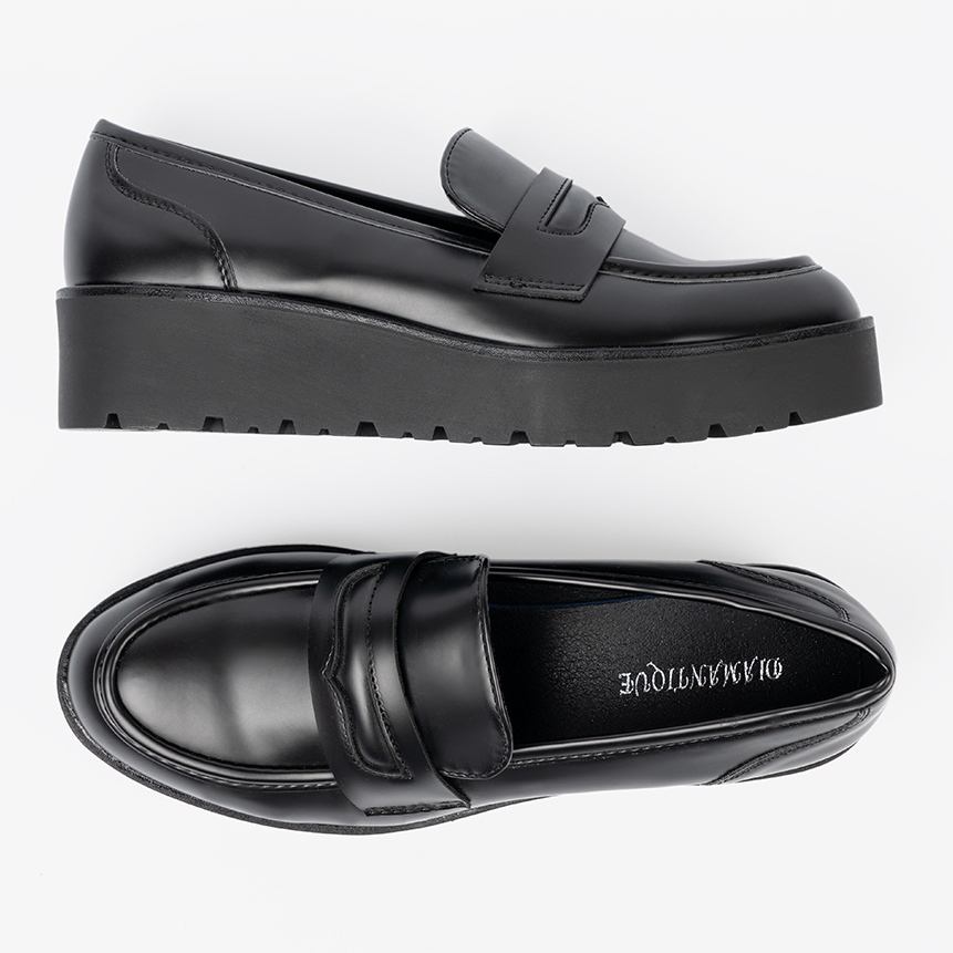 Shelvt Shelvt Mocassins noirs élégants sur une semelle épaisse le noir