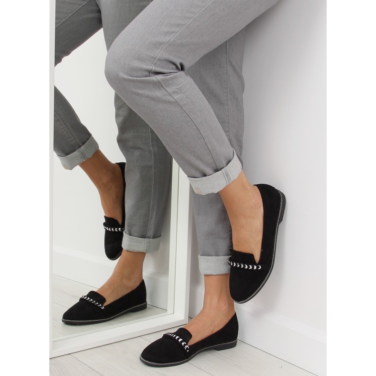Découvrez l'élégance et le confort avec les mocassins noirs N76 de Black Lords ! Ces belles chaussures pour femmes, fabriquées en daim écologique, attireront certainement l'attention par leur style unique. Un galon impressionnant avec des éléments de chaîne leur confère un caractère unique, et la bordure argentée brillante souligne leur élégance.