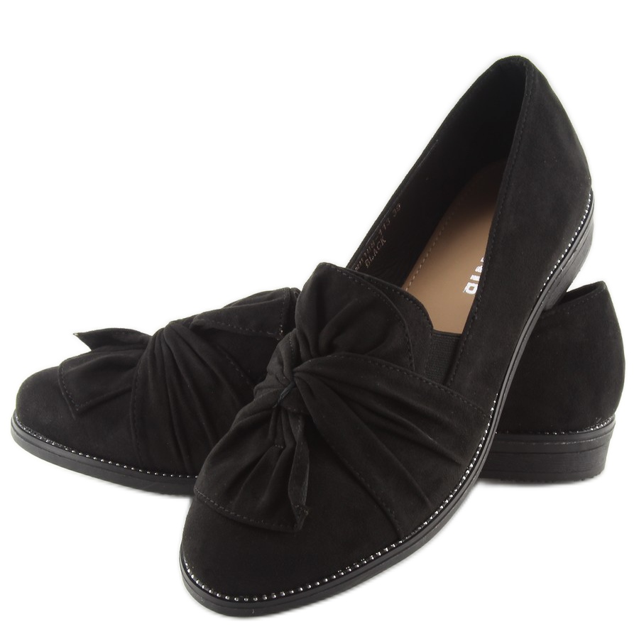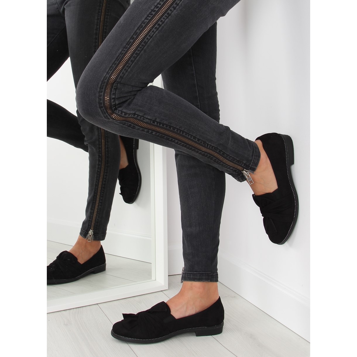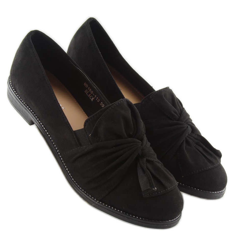 Détails: Mocassins noirs pour femmes avec un nœud noir le noir