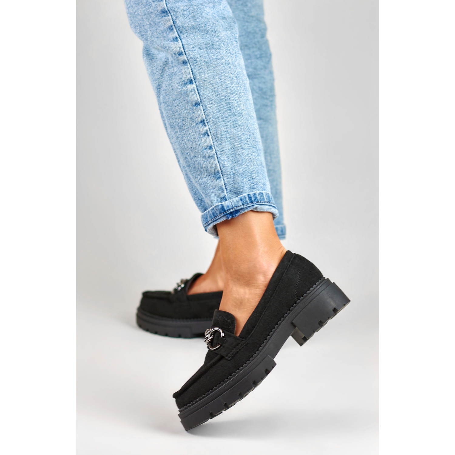Chaussures La.Fi Les mocassins plateforme en daim noir sont un choix parfait pour toutes les femmes qui apprécient la combinaison de confort, de fonctionnalité et d'apparence élégante.