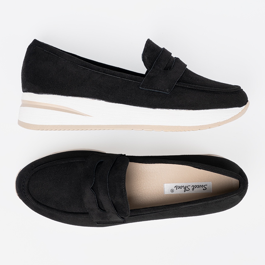 Découvrez l'élégance et la commodité avec des mocassins noirs sur la plate-forme Shelvt. Ces chaussures élégantes, en daim écologique, sont un excellent choix pour chaque saison de l'année, en particulier au printemps, en été et en automne. Leur apparence classique et décontractée les rend idéaux à la fois quotidiennement et pour des occasions plus élégantes.