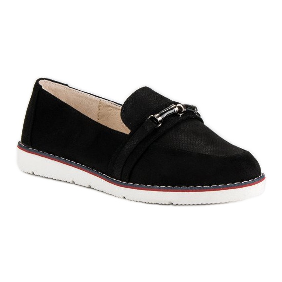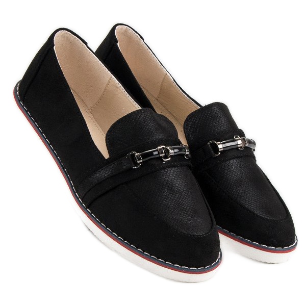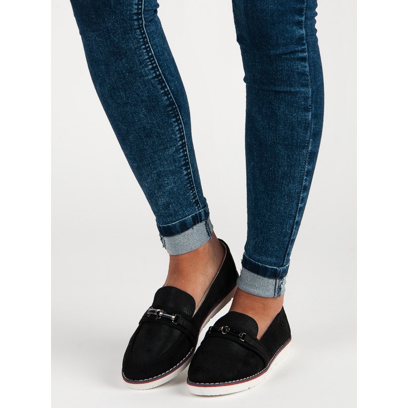 Les mocassins sont équipés d'une semelle intérieure souple, ce qui les rend confortables à porter toute la journée. Une semelle synthétique solide de 2 cm de hauteur garantit stabilité et durabilité. Les mocassins VICES noirs sont le complément parfait à toute garde-robe féminine, ajoutant un accent élégant et élégant.