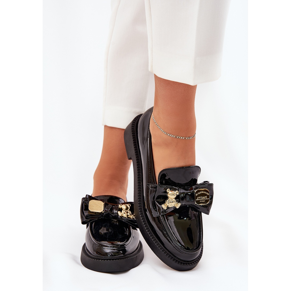 Découvrez le style inhabituel et le confort de porter grâce à nos mocassins vernies avec un arc et une broche noire décorative. Ces chaussures élégantes en cuir écologique de haute qualité combinent parfaitement un look à la mode avec un confort maximal qui vous permettra de les profiter toute la journée.