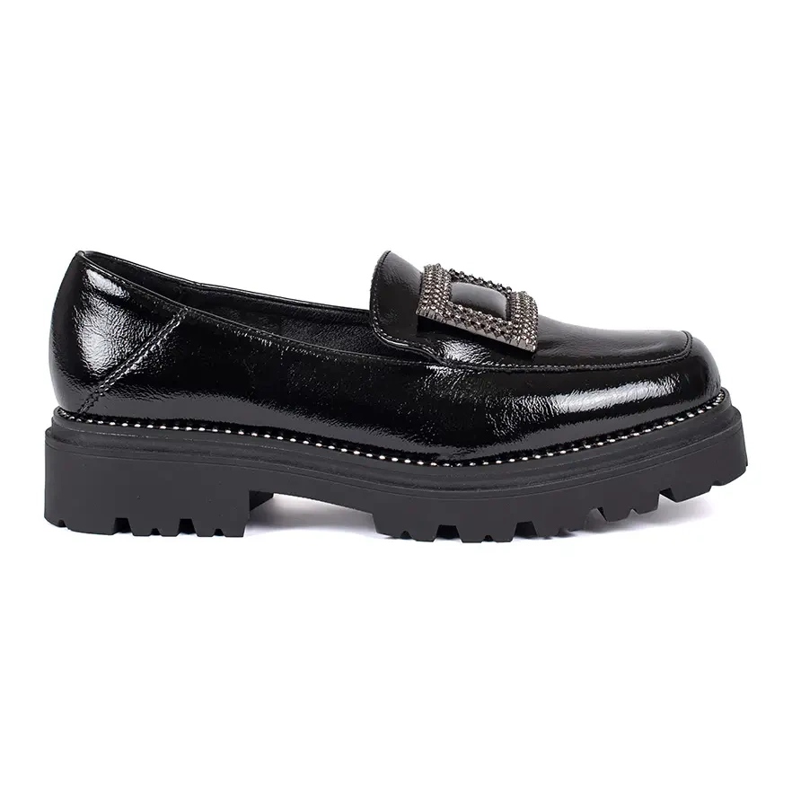 Détails: Goodin Mocassins plateforme femme noirs ornés d'une boucle et de strass le noir