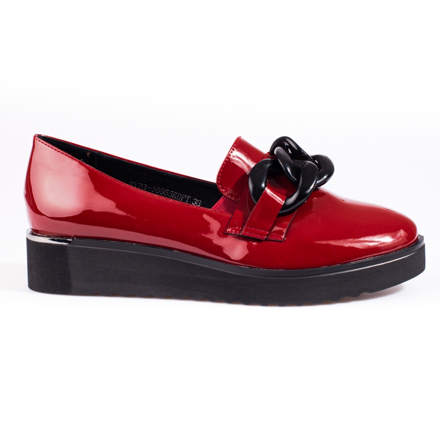 Détails: Vinceza Mocassins plateforme laqués bordeaux Shelovet avec chaîne rouge