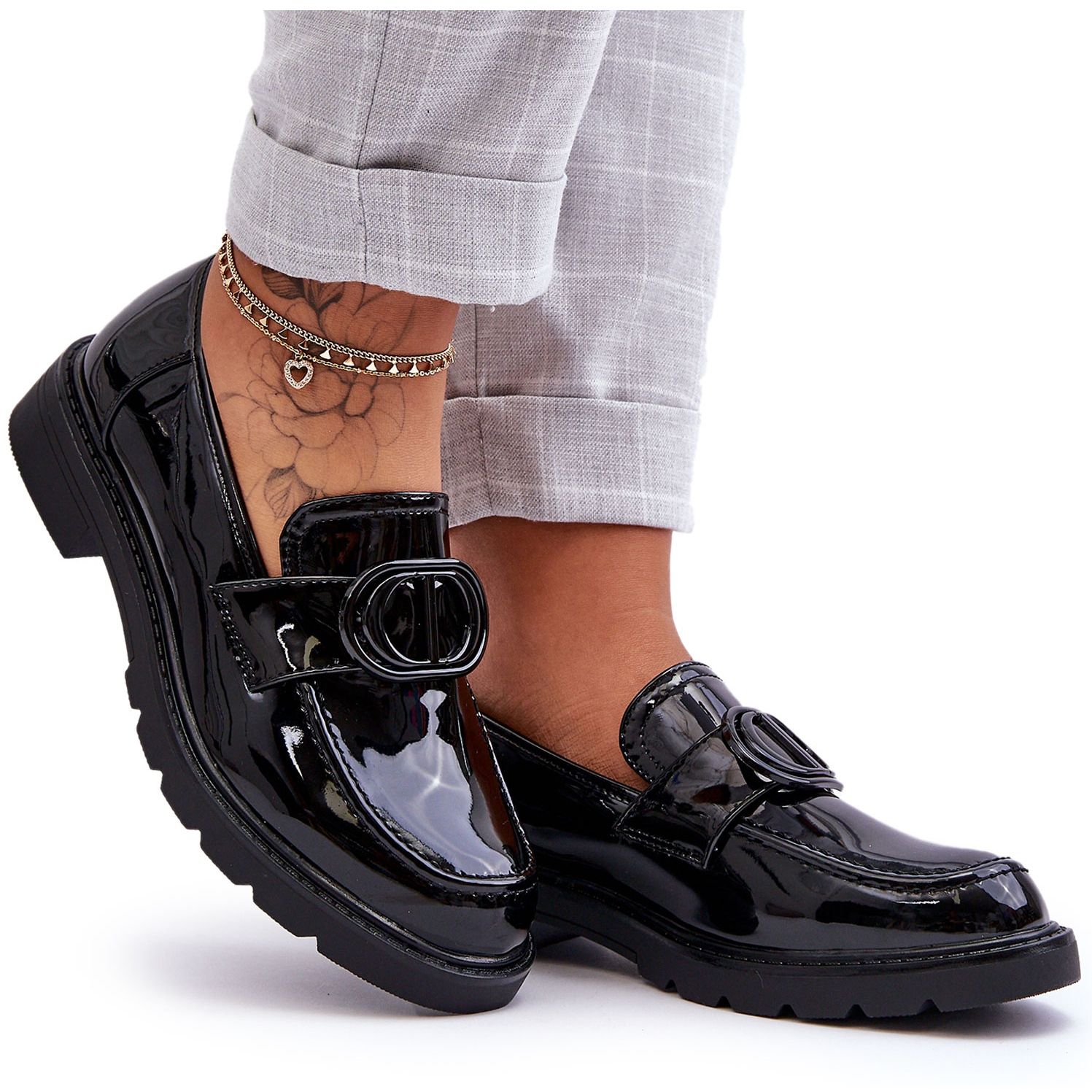 Nous présentons des chaussures élégantes et confortables pour la femme moderne - Mocassins en cuir verni PG1 sur plateforme, Black Jarren. Ces chaussures élégantes combinent les caractéristiques classiques des mocassins avec un design moderne et constituent le complément parfait à une garde-robe diversifiée.