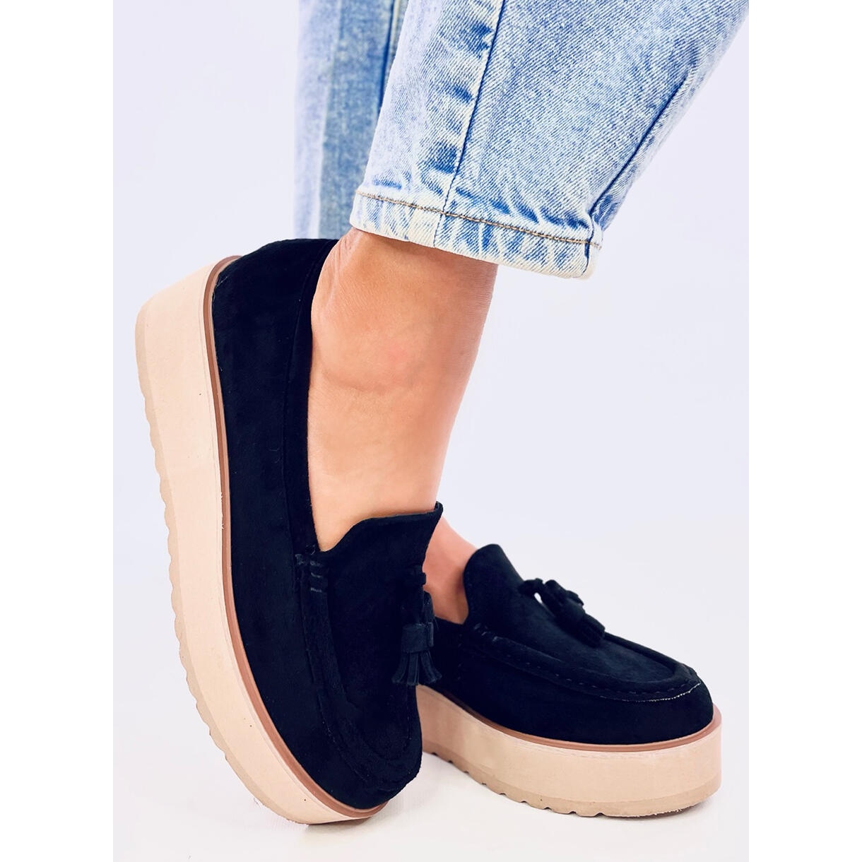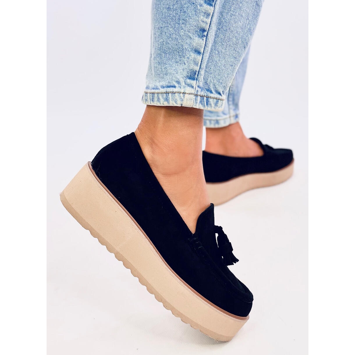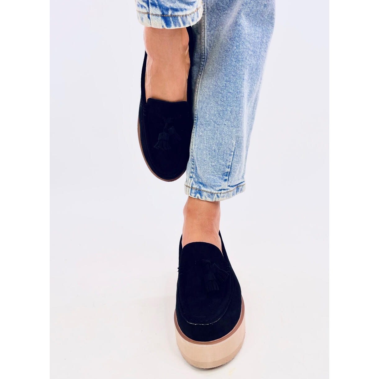 Découvrez l'élégance et le confort avec les mocassins à plateforme Templin Black. Ces mocassins en daim noir sont la combinaison parfaite de simplicité et de style qui vous permettront sûrement de vous démarquer dans la foule. Leur design minimaliste avec des franges décoratives ajoute une touche unique, ce qui les rend parfaits pour de nombreux styles de tous les jours – des tenues décontractées aux combinaisons plus élégantes.