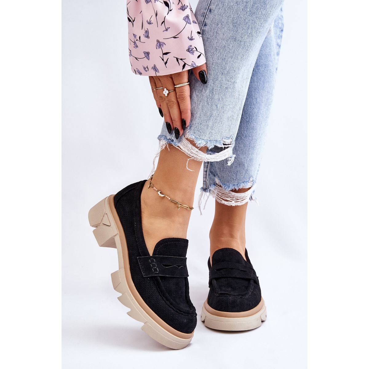 Ces mocassins sont montés sur un talon massif et plat de 5 cm de haut et une rehausse de 3 cm sur la plateforme, ce qui assure stabilité et confort d'utilisation tout au long de la journée. L'intérieur de la chaussure est fini avec un insert souple en cuir naturel, ce qui fait de marcher dans ces mocassins un véritable plaisir.