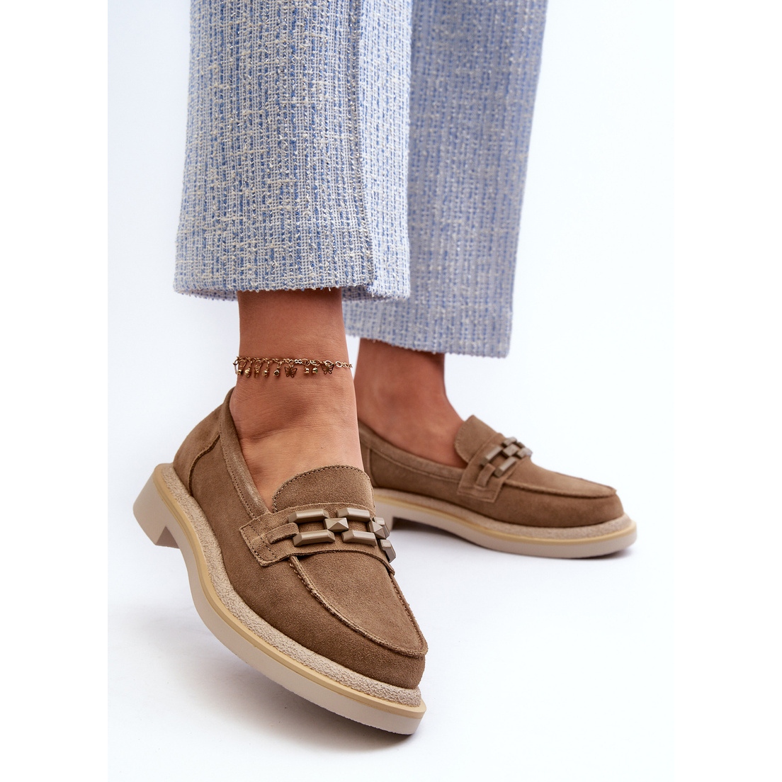 S.Barski S.Barski Mocassins Pour Femmes En Daim Sur Talon Plat Avec Décoration D&A TW101 Marron brun