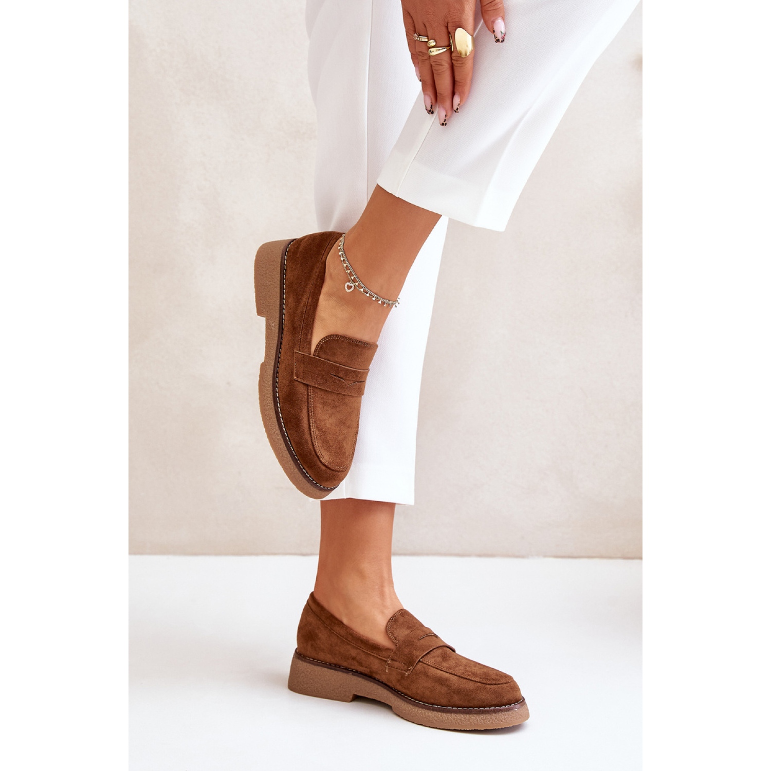 Inna marka Mocassins pour femmes en Eco-daim C-528, marron brun