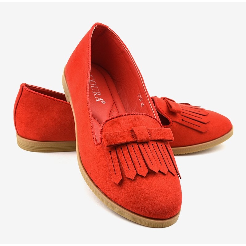 Les mocassins Lordsy en daim écologique de couleur rouge sont le modèle parfait pour les femmes qui veulent se sentir à l'aise et à l'aise avec des chaussures. Les chaussures ont une coupe assez classique et une couleur rouge intense. La hauteur totale de la chaussure est de 7 cm (y compris une plateforme de 1 cm d'épaisseur). Une caractéristique de ce modèle est l'ornement de franges placé dans la partie avant de la chaussure. Grâce à l'utilisation de peau de chamois écologique, les chaussures sont extrêmement agréables au contact de la peau, ce qui signifie qu'elles peuvent être utilisées en toute sécurité même tout au long de la journée.