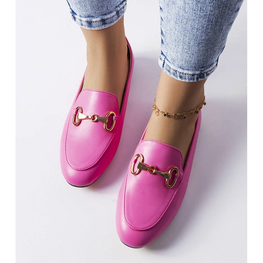 Les mocassins à boucle rose ont une numérotation standard, ce qui facilite le choix de la bonne taille. Leur conception universelle permet aux chaussures de s'adapter aussi bien aux pieds fins qu'aux pieds standards. Le bout arrondi et la semelle en plastique noir créent un look classique mais aussi moderne.