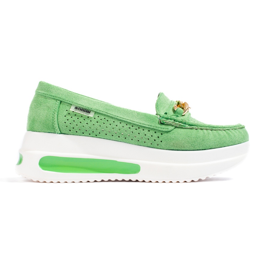 Détails: Mocassins Shelovet verts pour femmes sur la plate-forme