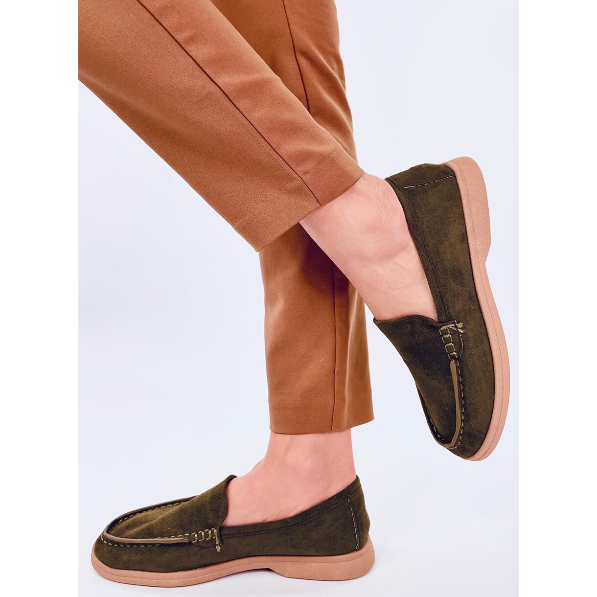 Découvrez un confort et un style inégalés avec des mocassins pour femmes douces dans une teinte verte profonde. Ces chaussures en daim sont une proposition idéale pour les femmes qui apprécient chaque jour le confort et l'élégance. Leur coupe minimaliste, enrichie de coutures subtiles, les fait parfaitement se mélanger avec diverses stylisations - du décontracté à plus élégant.