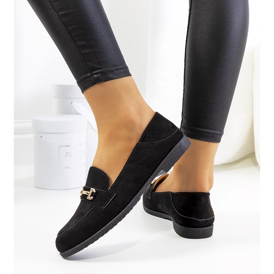 Découvrez les mocassins plats noirs Aniria qui complèteront parfaitement votre style, aussi bien au travail qu'au quotidien. Fabriquées en cuir suédé écologique de haute qualité, ces chaussures élégantes offrent non seulement un look élégant, mais également un confort de port. Le talon souple, sans raidissement en éco-cuir, s'adapte parfaitement au pied, ce qui fait de marcher avec un pur plaisir.