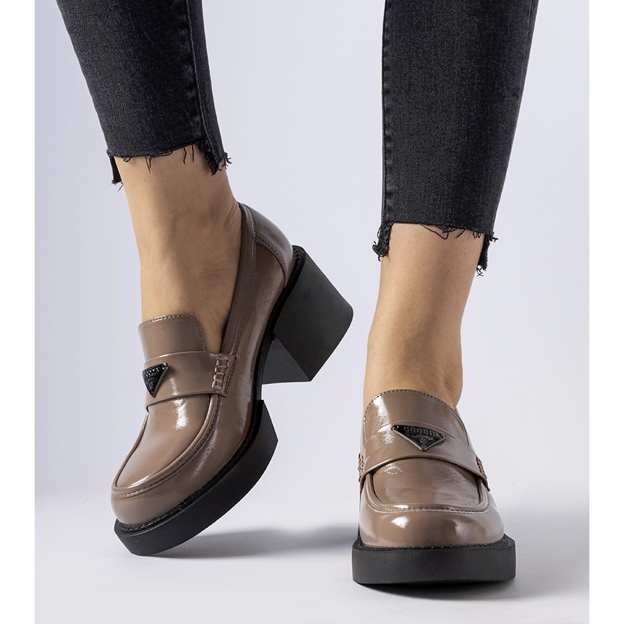 La surface laquée de couleur taupe confère à ces chaussures un éclat et un style uniques, ce qui en fait un élément indispensable de votre garde-robe estivale. Le bout rond est un accent subtil qui introduit l'élégance et permet à ce modèle de s'adapter parfaitement à une variété de styles, du décontracté au plus élégant.