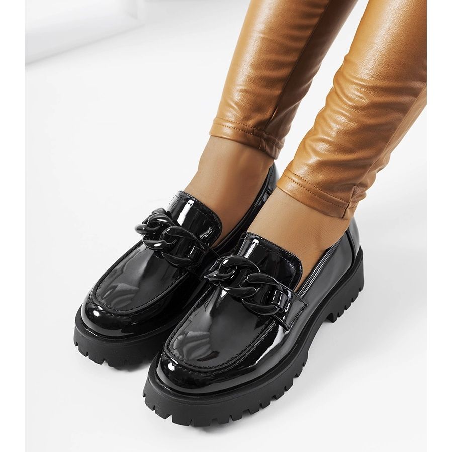 Mocassins vernis noirs à semelle épaisse Dominick