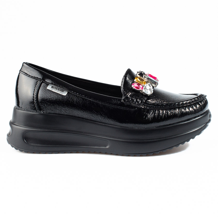 Goodin Mocassins vernis sur une plate-forme épaisse avec des cristaux Shelovet noir