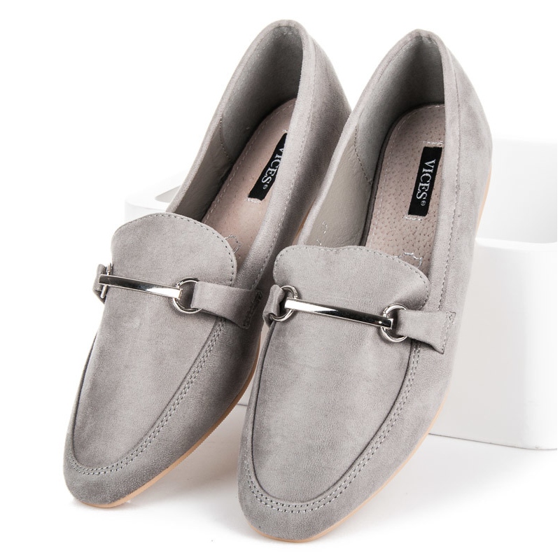 Les mocassins pour femmes Vices d'une élégante couleur grise sont un choix parfait pour les femmes modernes qui apprécient le confort et le style. Fabriqués en cuir écologique de haute qualité, ces mocassins sont non seulement superbes, mais sont également respectueux de l'environnement. Le cuir doux et naturel utilisé sur la semelle intérieure assure le confort même en cas de port prolongé, prenant soin de vos pieds dans toutes les situations.