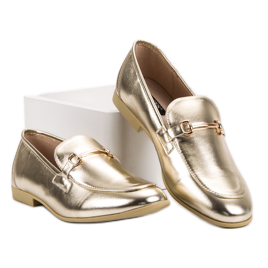 Découvrez l'élégance et le confort avec les mocassins VICES dorés laqués ! Ces chaussures élégantes sont un choix idéal pour les femmes qui apprécient à la fois le confort et l'apparence à la mode. Fabriqués en cuir naturel de haute qualité, ils offrent non seulement un superbe look, mais également une durabilité et un confort de port.