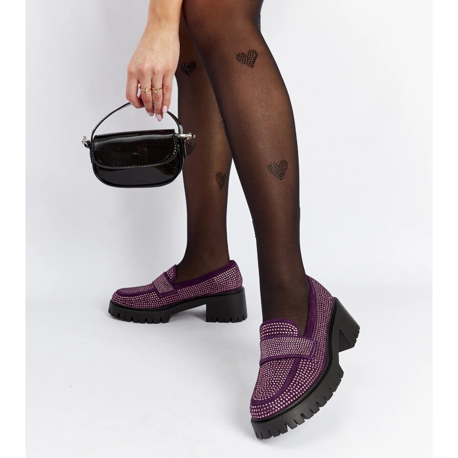 Les mocassins violets sur un talon massif avec l'ajout de zircons sont une véritable perle parmi les chaussures pour femmes. Ce modèle unique allie élégance et confort, répondant parfaitement aux besoins d'une femme moderne. Fabriqués en cuir suédé écologique de haute qualité dans une couleur violette accrocheuse, ils constitueront un accent clair dans n'importe quel style.