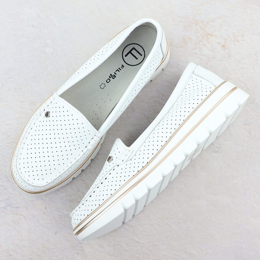 Ces mocassins blancs ne sont pas seulement des chaussures, mais un véritable incontournable ce printemps. Investissez dans un style qui combine le confort à la mode, en choisissant des mocassins en cuir ouverts sur la plate-forme de la marque Filippo. Profitez du style et du confort originaux à chaque étape!