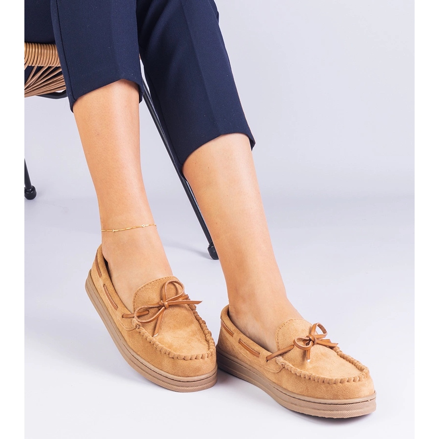 Les mocassins sont faits d'ekozamszu de haute qualité, ce qui les rend non seulement respectueux de l'environnement, mais aussi extrêmement durables et faciles à prendre en charge. L'arc charmant, qui décore ce modèle, lui donne un caractère subtil, ce qui en fait un élément inséparable de toute stylisation. La couleur brune de ces mocassins va parfaitement avec des tenues décontractées et élégantes, ce qui en fait un choix polyvalent pour diverses occasions.