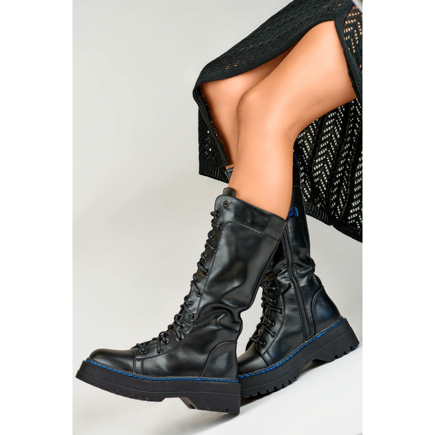 Les bottes sont en cuir écologique de haute qualité, ce qui les rend non seulement respectueux de l'environnement, mais aussi très durables. Le haut de 30 cm de haut atteint la moitié du mollet, offrant un excellent soutien et stabilité. De plus, un laçage spécial et une fermeture éclair sur toute la longueur de la tige permettent de mettre et de retirer les chaussures.