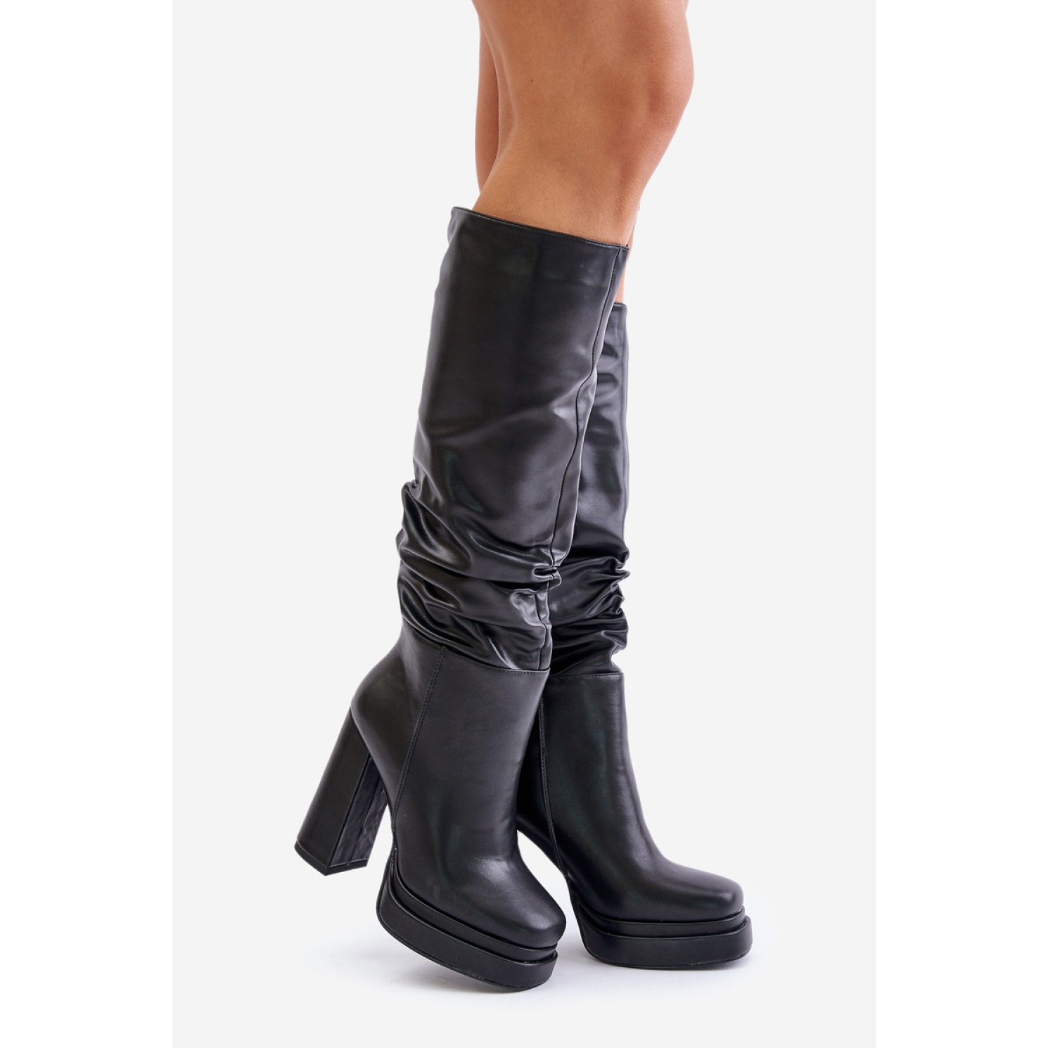 Les bottes sont placées sur une plate-forme stable avec un talon de haute barre de 12,5 cm, ce qui garantit le confort toute la journée. Grâce à l'insertion, ils sont faciles à mettre et à prendre, ce qui en fait le choix parfait pour toute occasion.