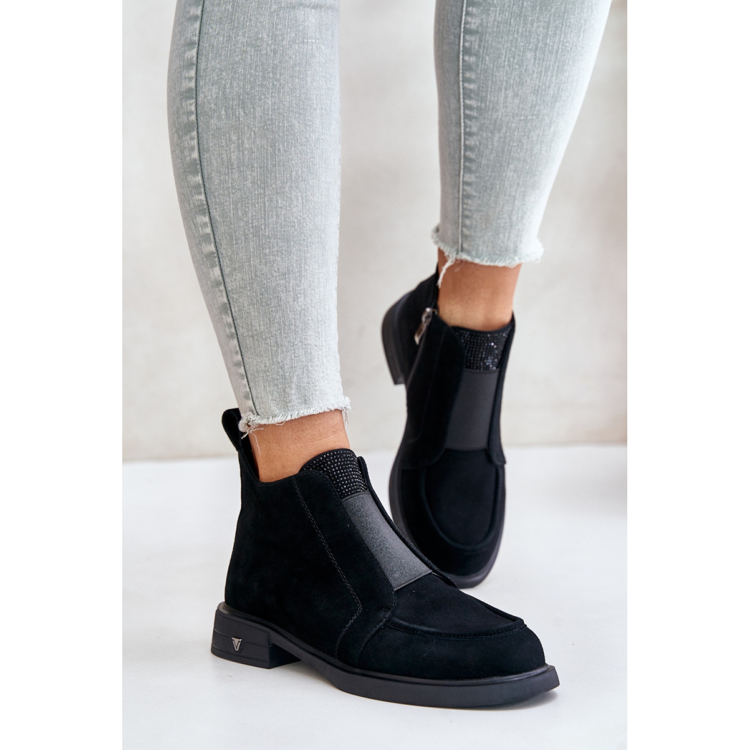 Le modèle Botki donnera JC42-23 Black de Step in Style est la combinaison parfaite d'élégance et de confort. Ces bottes pour femmes avec une tige à la cheville basse sont en daim naturel, qui non seulement semble élégante, mais assure également la durabilité et le confort de l'usure.