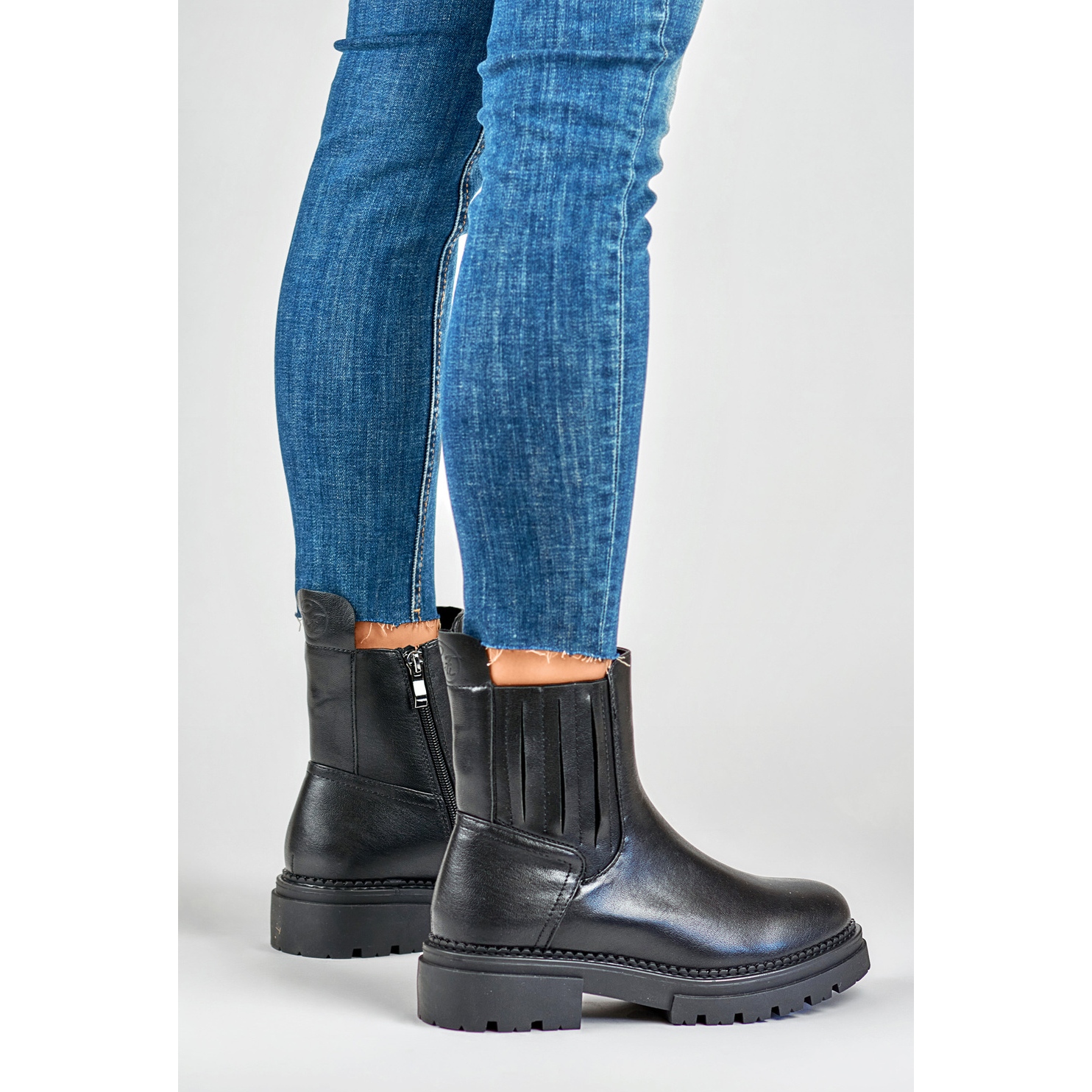 Les travailleurs modèles Dany 250041b -pu noir - Primo est des chaussures élégantes et fonctionnelles qui seront idéales pour la saison d'automne / hiver. Fabriqué en cuir biologique de haute qualité, les chaussures combinent le design à la mode avec le confort. Leur tige de 14 cm de haut offre une protection efficace contre le froid, et l'intérieur rembourré avec une éco-fourrure agréable augmente en outre le confort thermique.