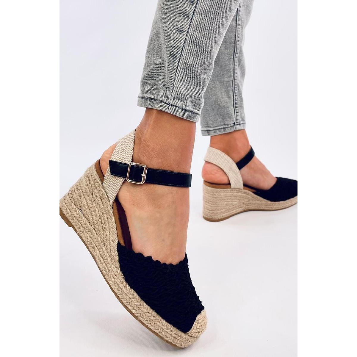 Sandales - espadrilles pour femmes à talon compensé, hauteur 8,5 cm. Ces chaussures uniques sont très délicates et romantiques grâce au galon qui les recouvre, qui se marie parfaitement avec la finition en lin. Ils complèteront n'importe quel style estival :) Non seulement ils sont superbes, mais ils sont également très confortables ! Matériau extérieur ? tissu.
