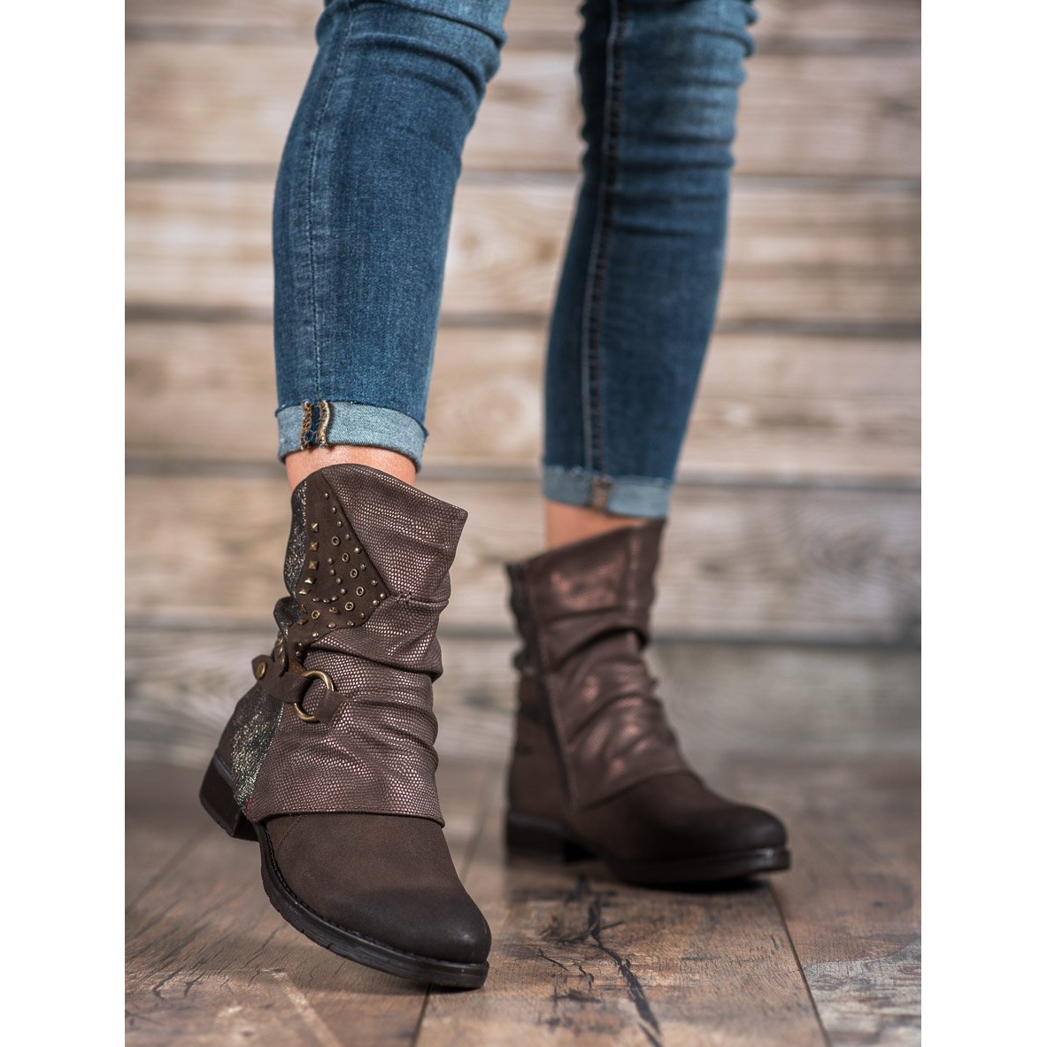 Nous vous présentons des motards marron élégants et stylés de la marque Super Me, qui sont le complément parfait à la garde-robe de toute femme. Ces bottes uniques se caractérisent par une combinaison inhabituelle de matériaux aux textures différentes, ce qui en fait un ajout original à de nombreux styles.