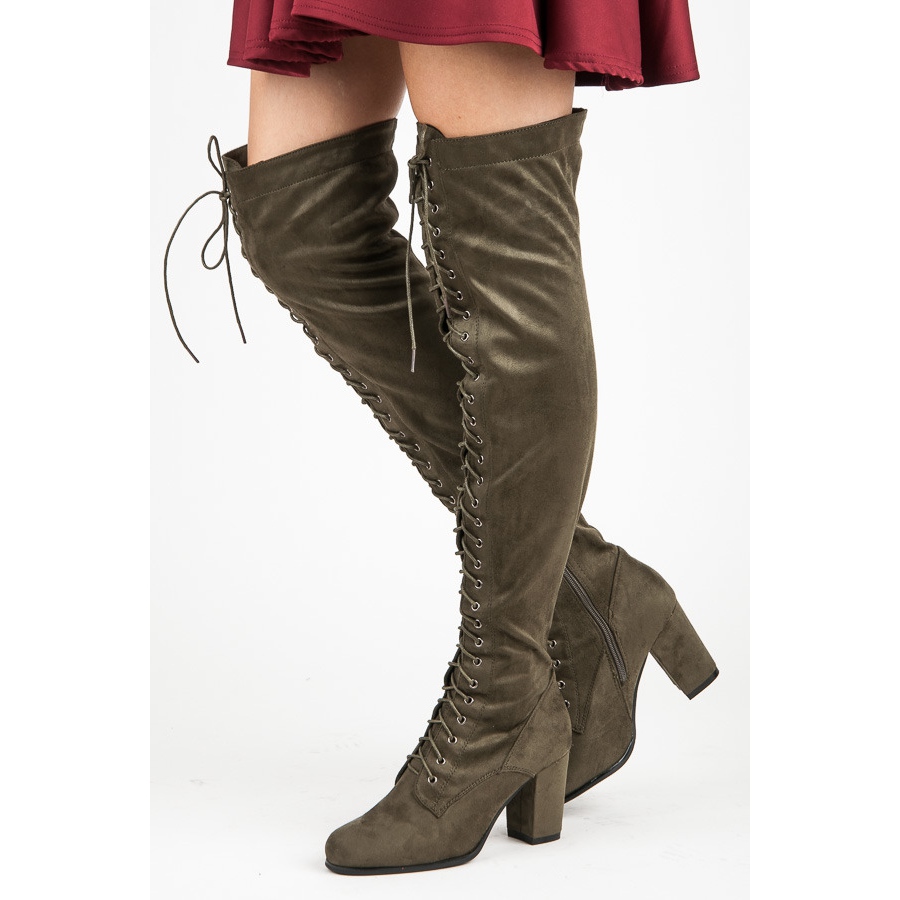 Ils se caractérisent par un bout rond, qui assure un confort de port, et sont en outre équipés d'une fermeture pratique - des lacets et une fermeture éclair, qui les rendent plus faciles à enfiler. La tige au-dessus du genou permet aux mousquetaires Marquiz de s'adapter parfaitement aux dernières tendances de la mode, et la hauteur du talon de 8 cm ajoute une subtile élégance à l'ensemble.