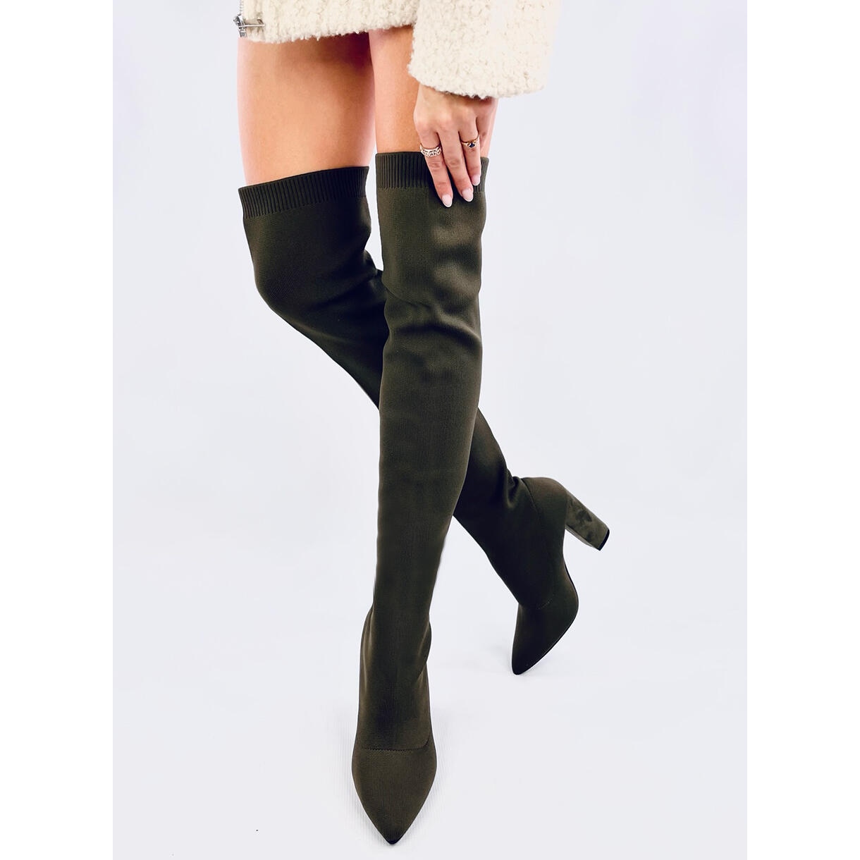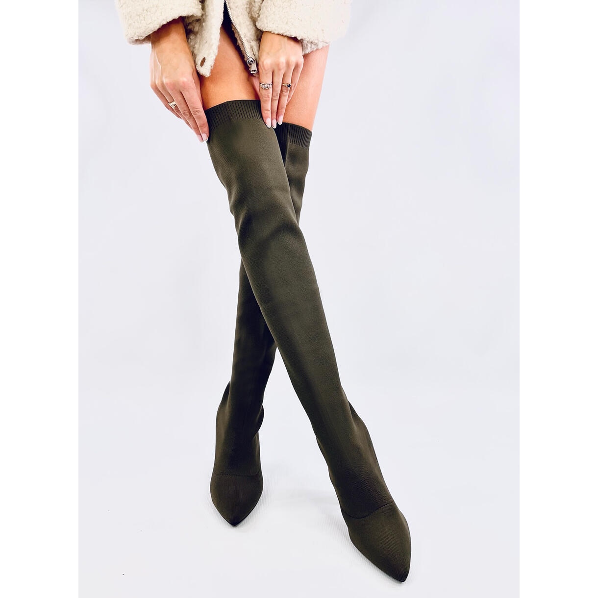 Découvrez l'élégance et le style grâce à Veronica Green Flexible Mousqueters dans une belle teinte verte. Ces chaussettes uniques en tissu en daim ont été conçues pour le confort et l'esthétique. Leur nez galré et en amande et un talon classique avec une hauteur de 10,5 cm leur donnent du style, et le matériau flexible s'adapte parfaitement à la jambe, soulignant sa minceur.