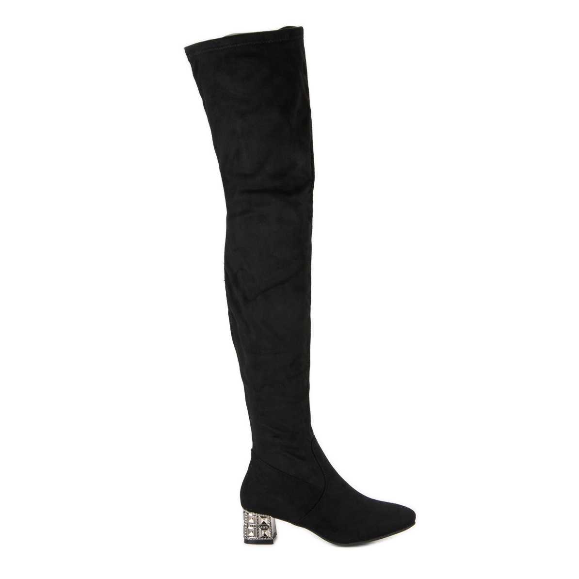Ces mousquetaires tendance jusqu'aux genoux mettent parfaitement en valeur la silhouette, et leur finition en daim écologique ajoute classe et élégance. La hauteur supérieure de 46 cm et le talon de 5 cm avec des éléments décoratifs argentés distinguent ce modèle des autres. Grâce à des détails uniques, chaque pas devient plus confiant et vous devenez une star chaque soir.
