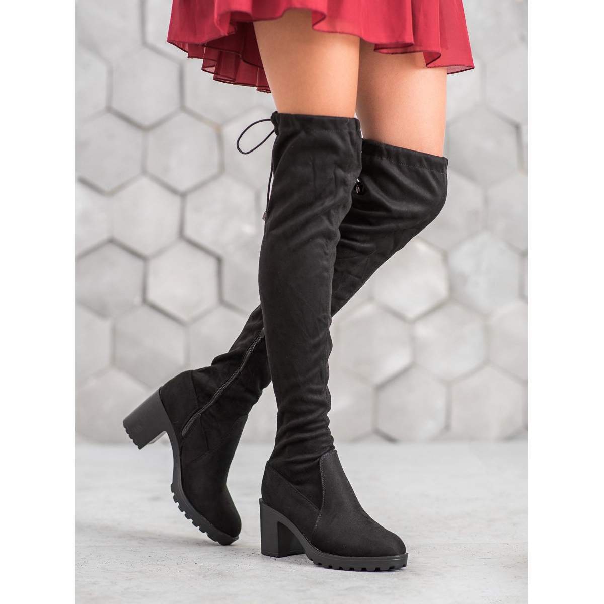 Découvrez l'élégance et le style avec les mousquetaires Small Swan en noir, qui sont un choix parfait pour les femmes à la recherche de solutions de mode classiques et modernes. Ces chaussures uniques, dotées d'un solide talon haut de 8 cm, offrent non seulement du confort, mais aussi de la stabilité lors de la marche. Grâce à sa conception avancée, la tige arrivant au-dessus du genou protège efficacement du froid, ce qui en fait un choix idéal pour les journées les plus froides.