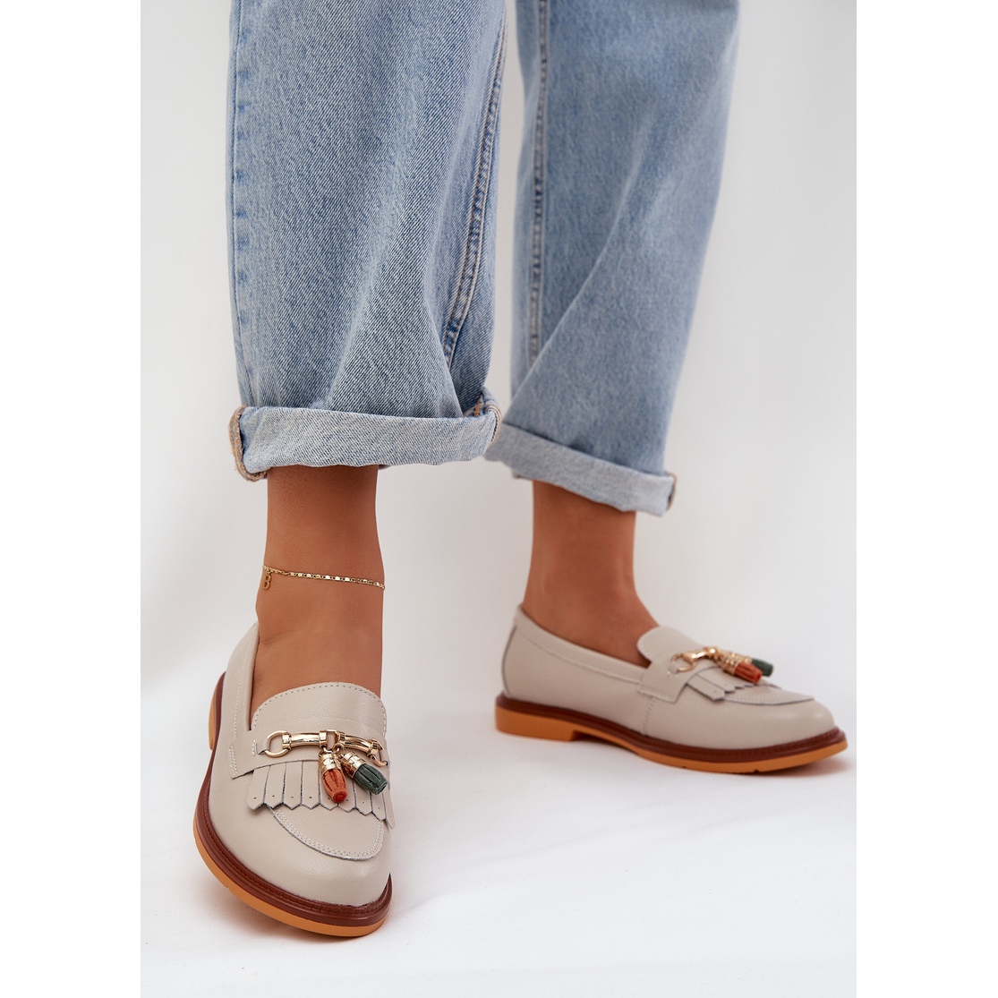 Mandis en cuir à talons plats S. Barski LR51-768 en beige est une proposition idéale pour une femme moderne qui valorise l'élégance et le confort. Fabriqués en cuir naturel de haute qualité, ils garantissent la durabilité et un style unique qui fonctionnera dans toutes les situations - à la fois au travail et tous les jours.