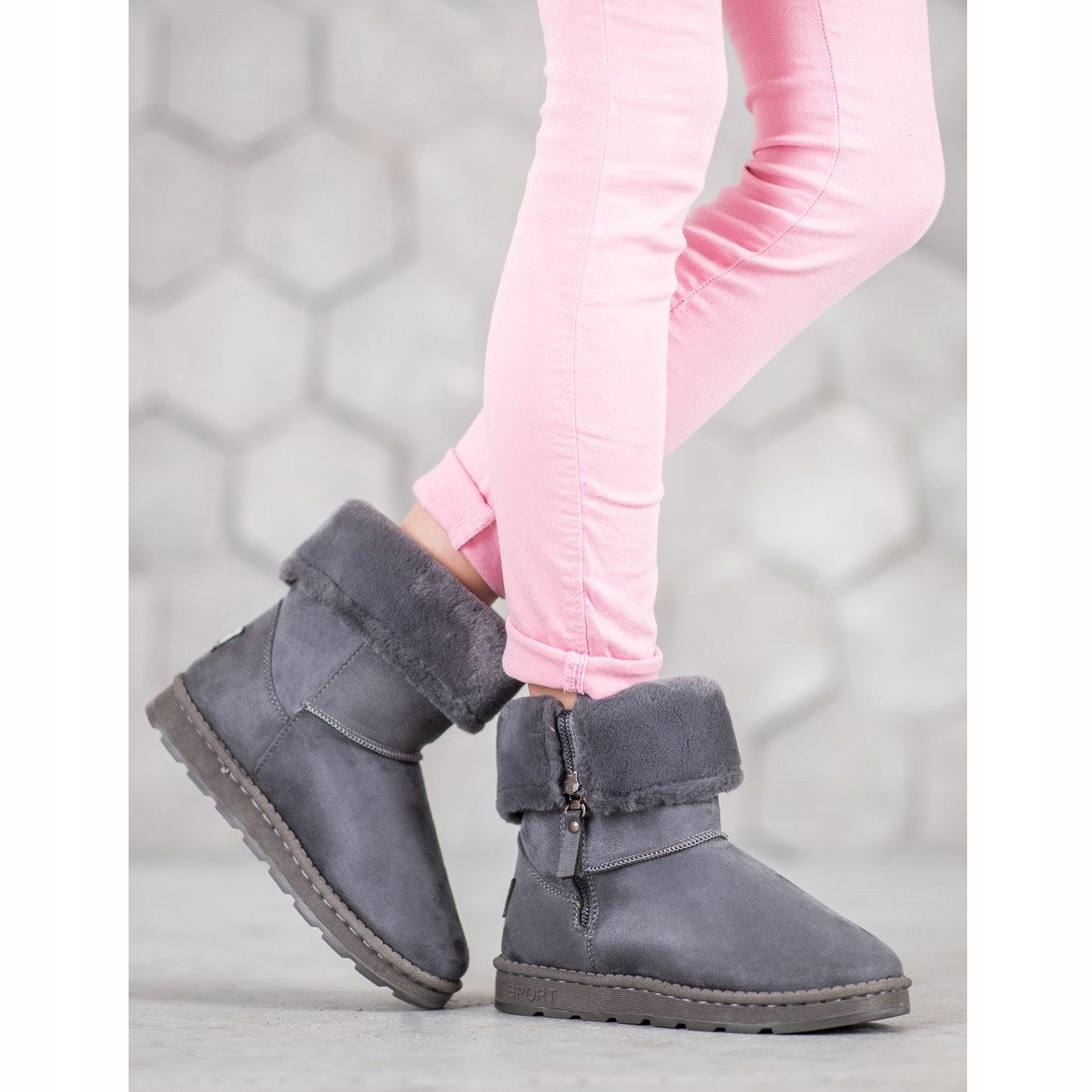 Détails: Bona Mukluki avec tige enroulée gris