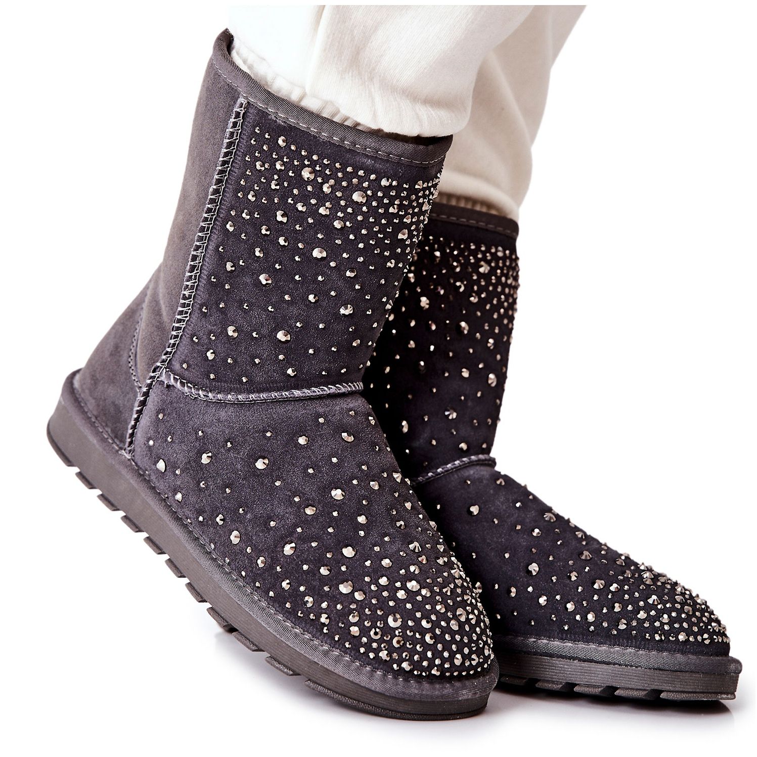 Des bottes de neige élégantes et chaudes qui combinent le style des femmes avec des solutions pratiques pour l'hiver. Fabriqué en daim naturel, décoré de strass chatoyants - parfait pour les sorties glaciales mais efficaces.